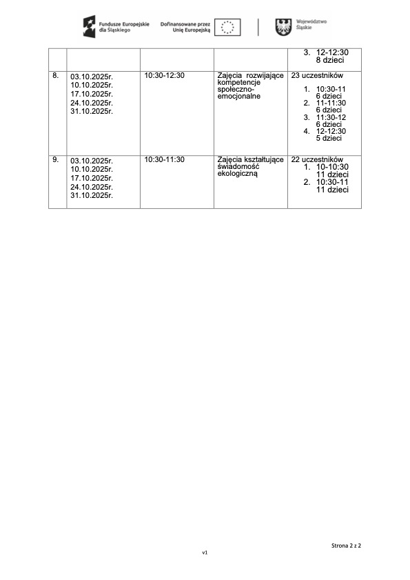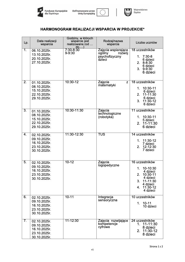 Harmonogram realizacji wsparcia w projekcie na miesiąc PAŹDZIERNIK