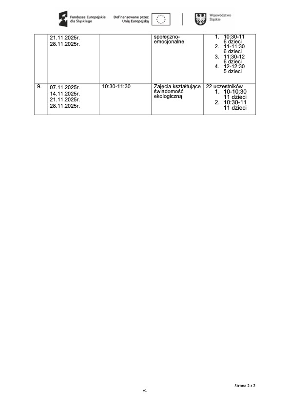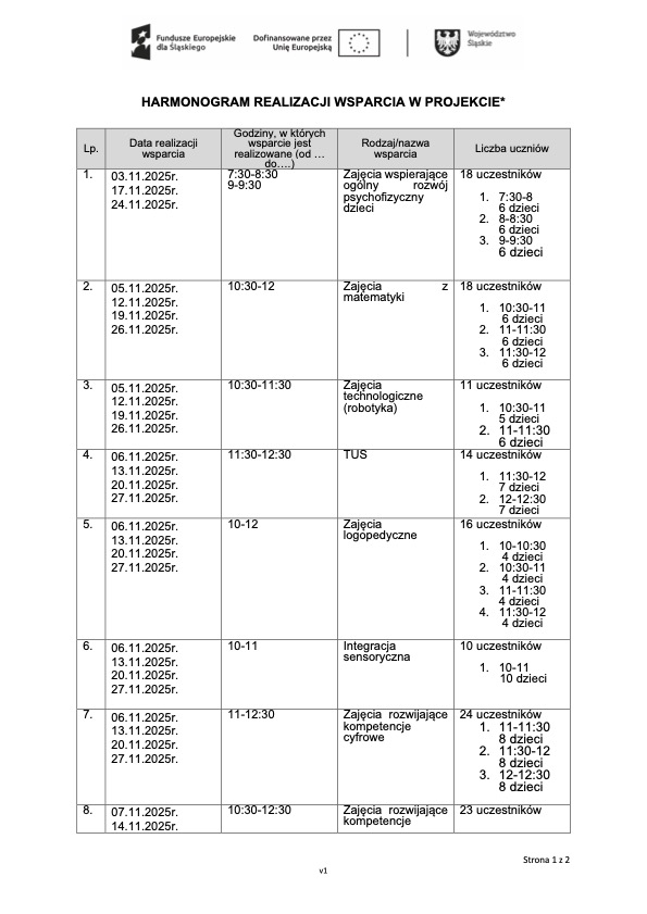 Harmonogram realizacji wsparcia w projekcie na miesiąc LISTOPAD